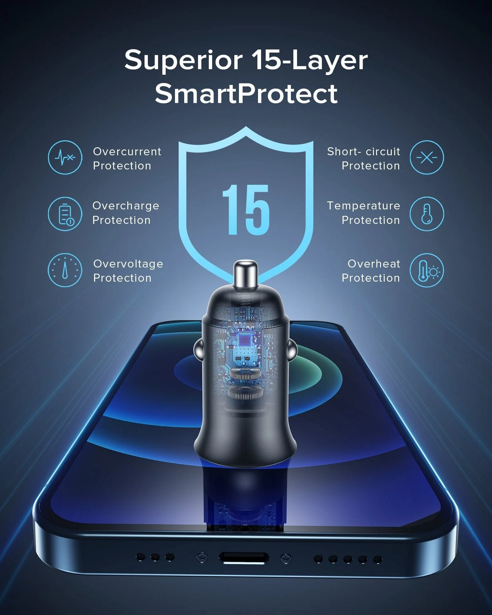 - Safety Matters: INIUâs superior 15-layer SmartProtect system provides over-current, over-voltage, overcharge, temperature control, and more advanced protections to ensure total security for your car and devices.